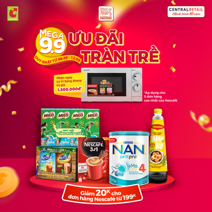 Hỡi chiến thần săn sales, có ai muốn chớp deal to từ Nestle? Chần chờ gì, nhanh bật app GO! & Big C hoặc Zalo và tận hưởng siêu ưu đãi không thể hot hơn tại Big C. Vui Lễ bùng nổ cùng loạt cực phẩm đến từ Nestle như cafe chuẩn gu, trà ngon đậm vị, gia vị nhà bếp, sữa thơm đầy dưỡng chất và các thực phẩm chất lượng khác trong chương trình ưu đãi sau: