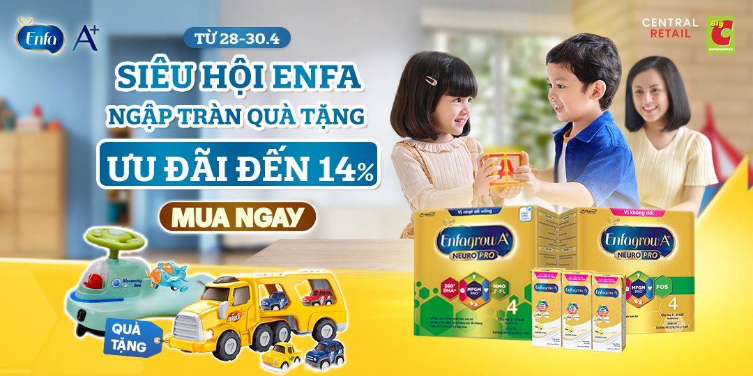 - 03 xe lắc cho đơn hàng Enfa cao nhất khi mua sản phẩm sữa Enfa ưu đãi trong tháng 4 này.