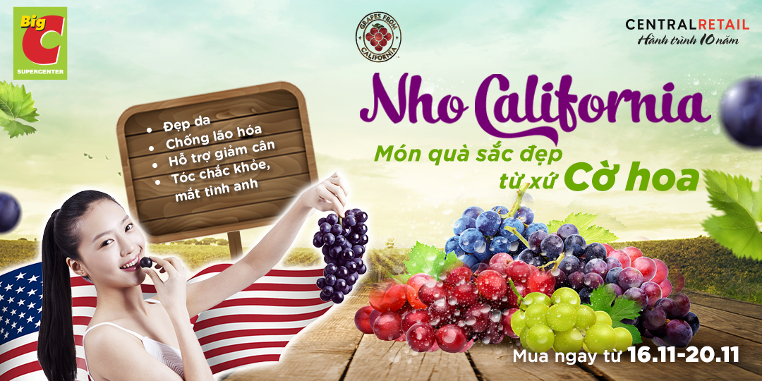 Từ 16 - 20.11, Big C đang có chương trình ưu đãi nho hấp dẫn tại hệ thống siêu thị trên toàn quốc. Nho chính vụ, chất lượng tuyệt hảo cho bạn lựa chọn: Mỹ đen không hạt, nho xanh Mỹ không hạt, nho đỏ Mỹ không hạt và nho Mỹ đen móng tay. Tranh thủ mua ngay bổ sung vào thực đơn mỗi ngày để tăng cường dinh dưỡng cho cả gia đình nhé!Chị em bận rộn có thể MUA SẮM ONLINE qua các kênh của Big C để được FREESHIP tận nhà cho đơn từ 300K nha: